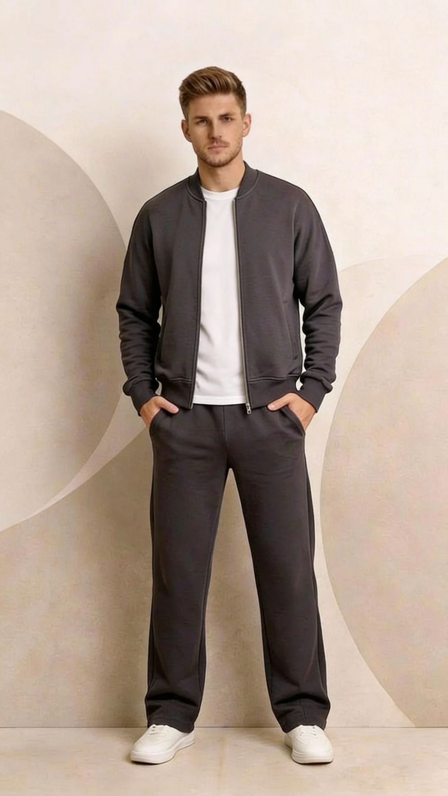 Идеальный спутник для города, тренировок и отдыха. Этот спортивный костюм черного цвета — основа любого современного гардероба. Универсальный дизайн без лишних деталей легко сочетается с любыми кроссовками и футболками. Изготовлен из качественного материала, который сохраняет форму и дарит комфорт в любой ситуации — от утренней пробежки до вечера с друзьями.
